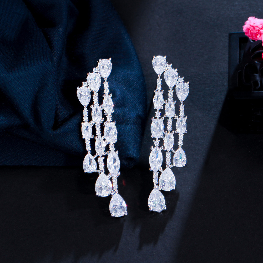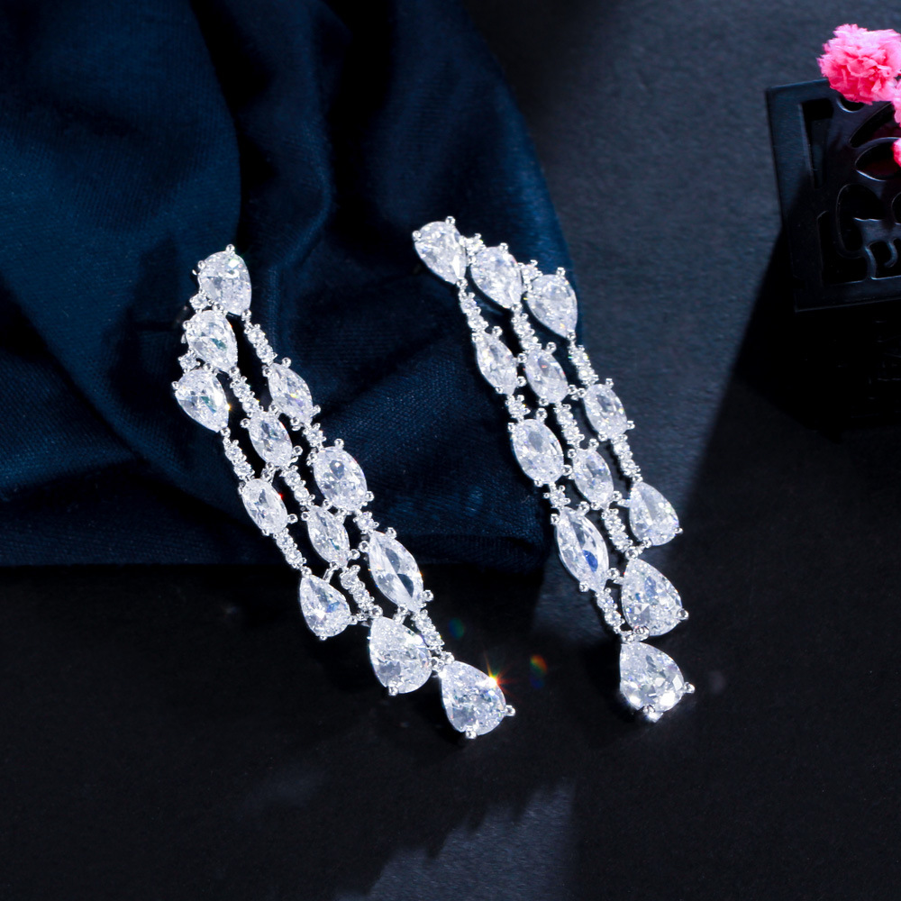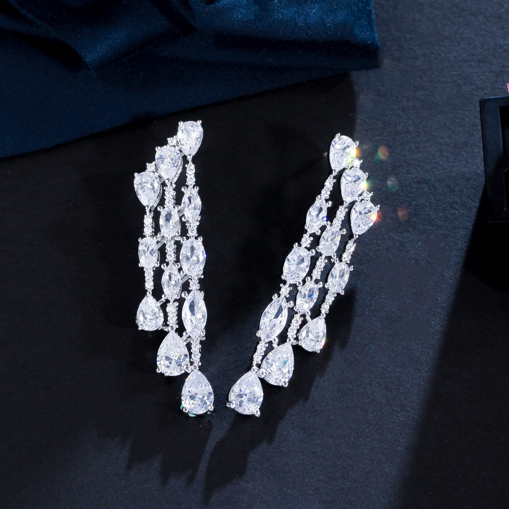 925 Sterling Silver Needle Temperament Personality With Zirconia Full Drill Teardrop-shaped Earrings