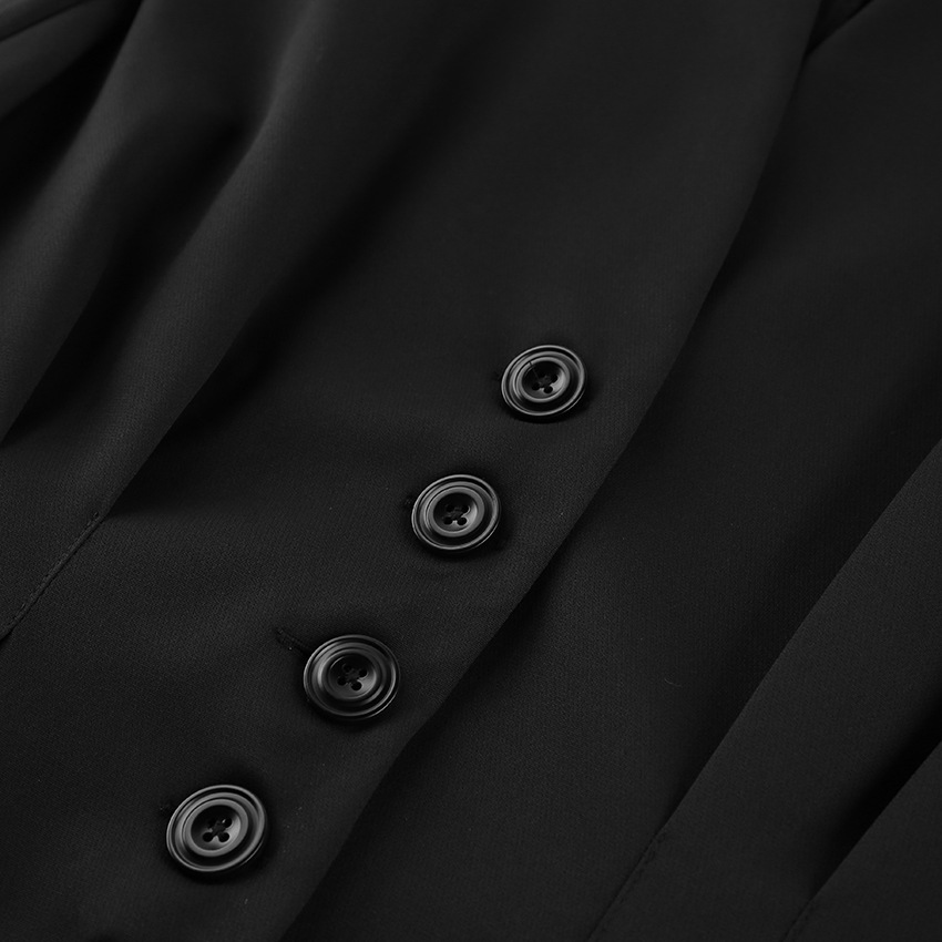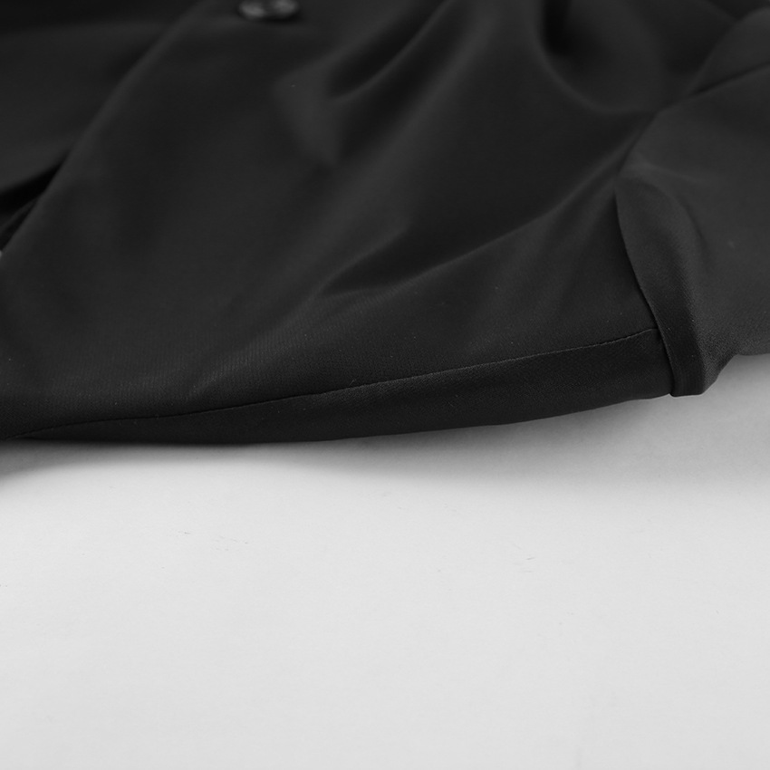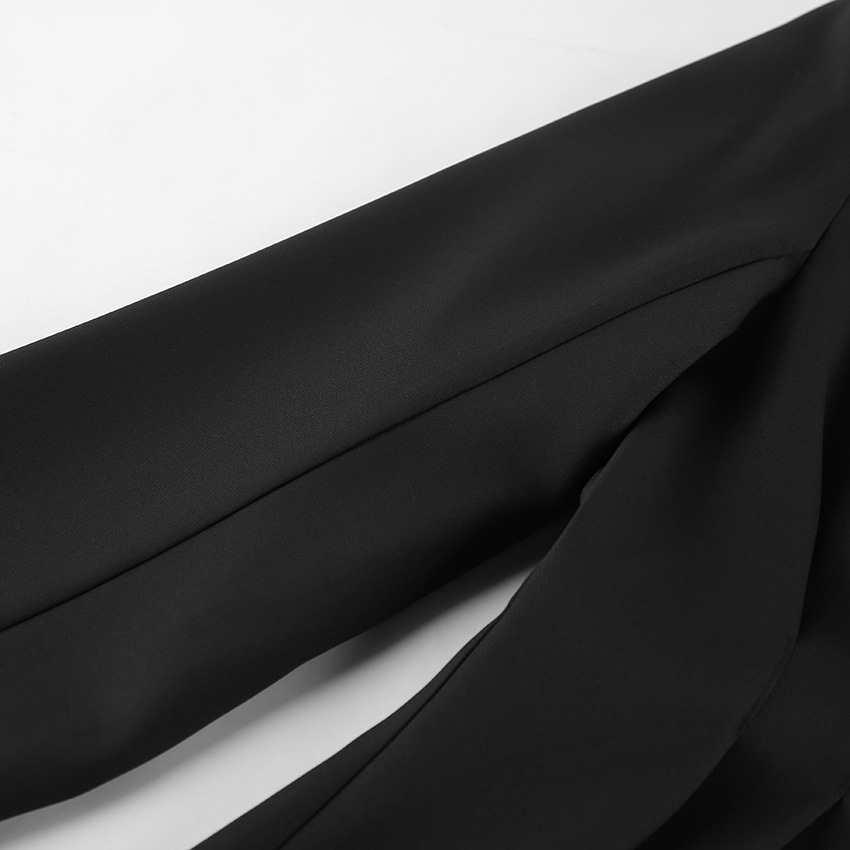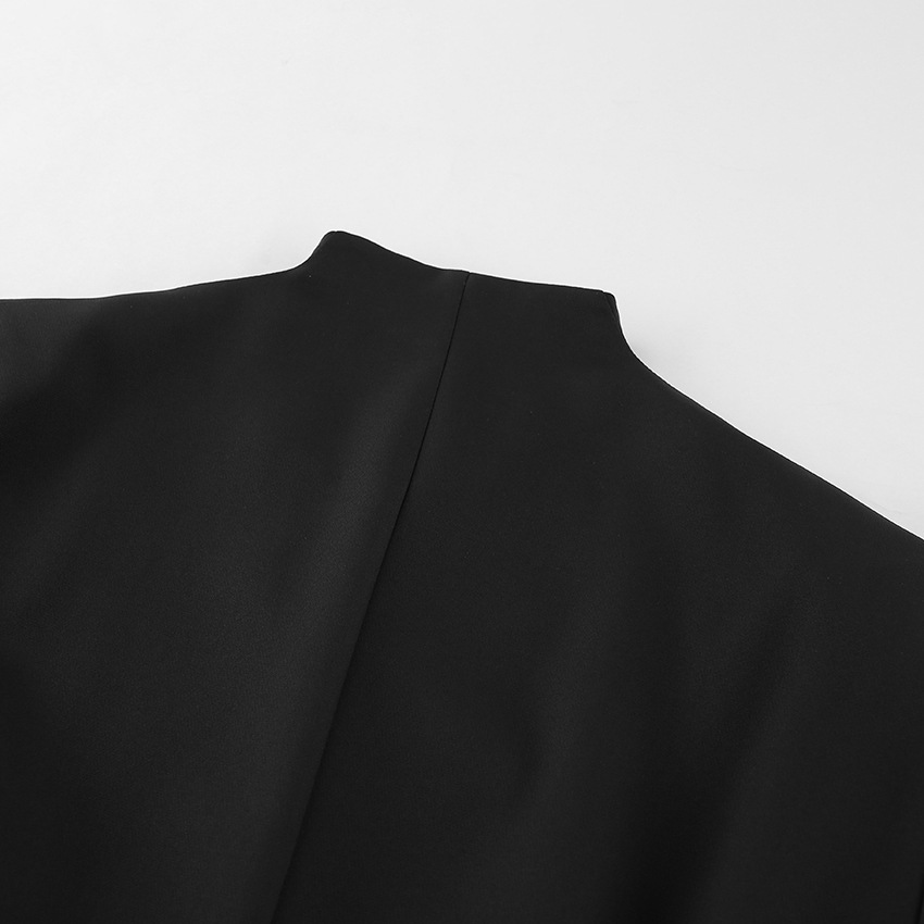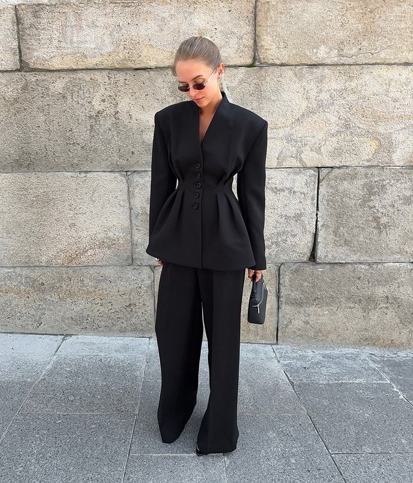 Black Long Sleeve V-neck Pleated Waist Tight Suit Jacket Trousers Two-piece Set