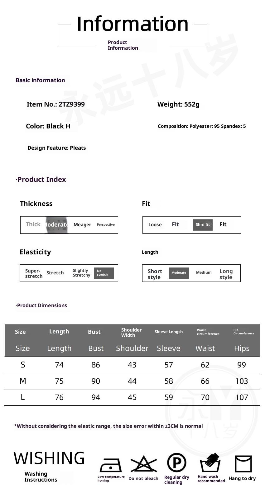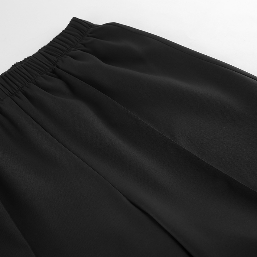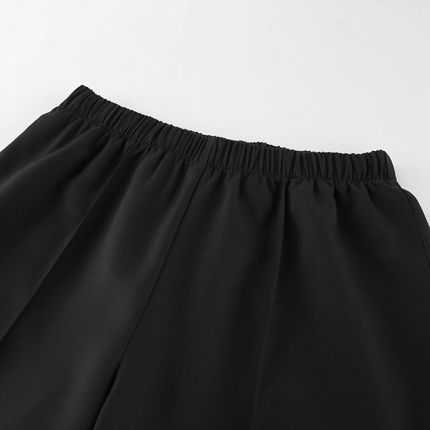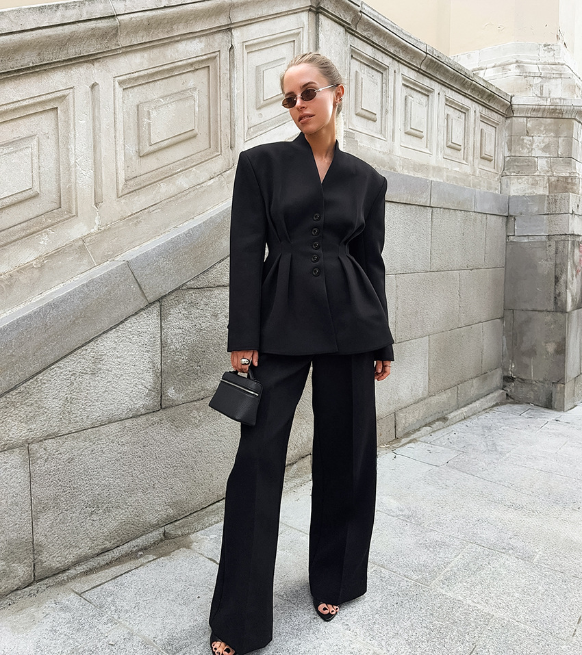 Black Long Sleeve V-neck Pleated Waist Tight Suit Jacket Trousers Two-piece Set