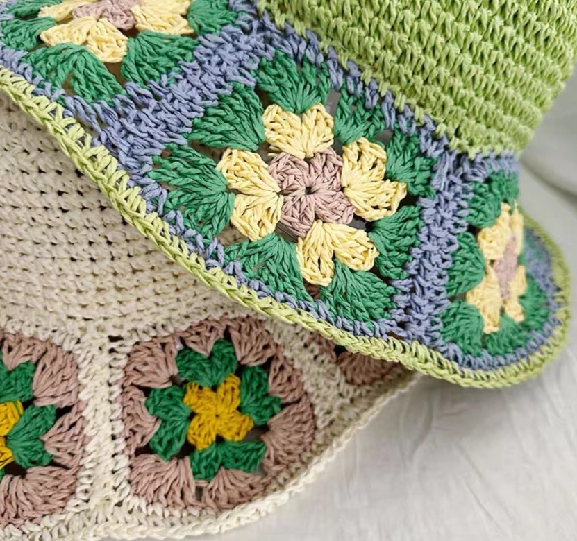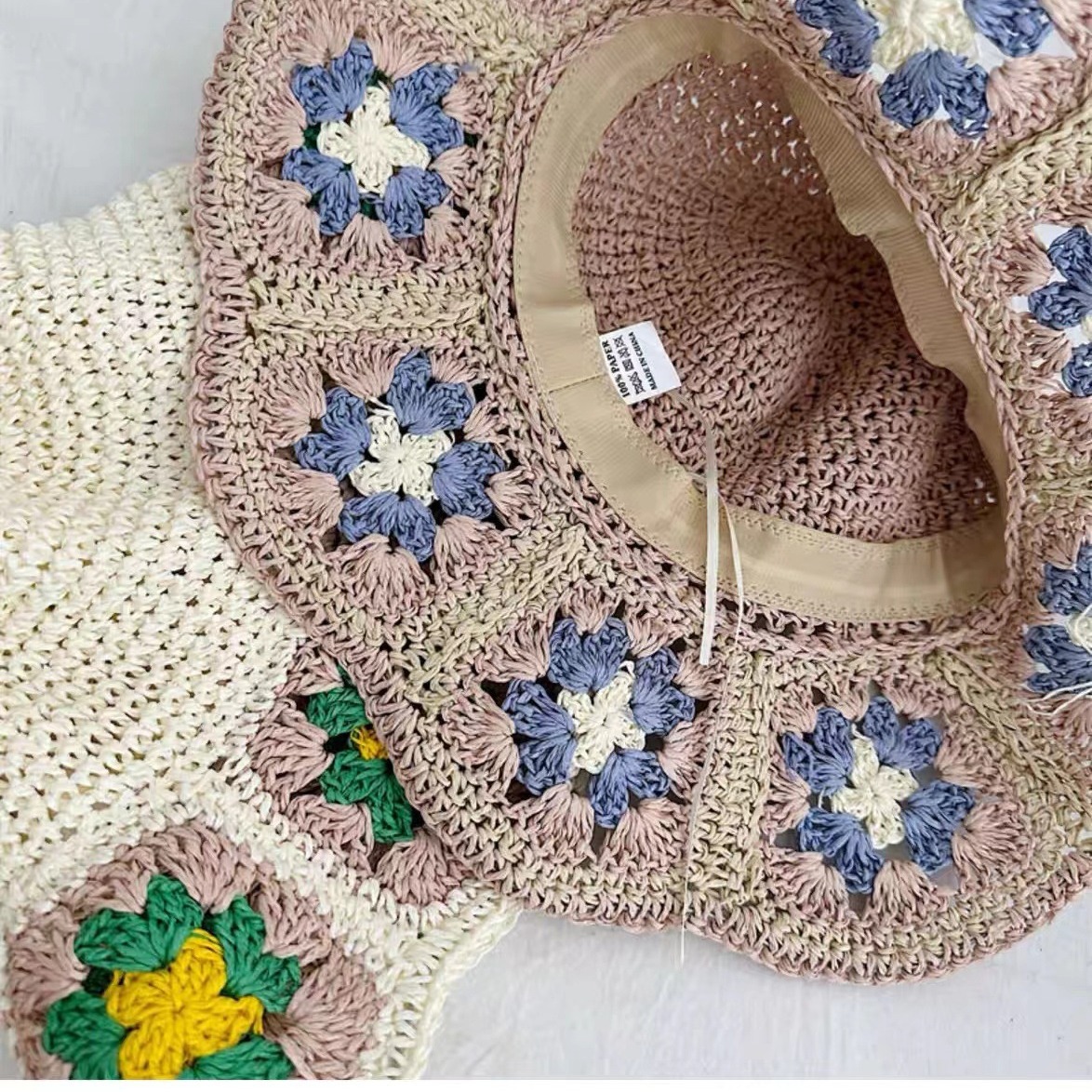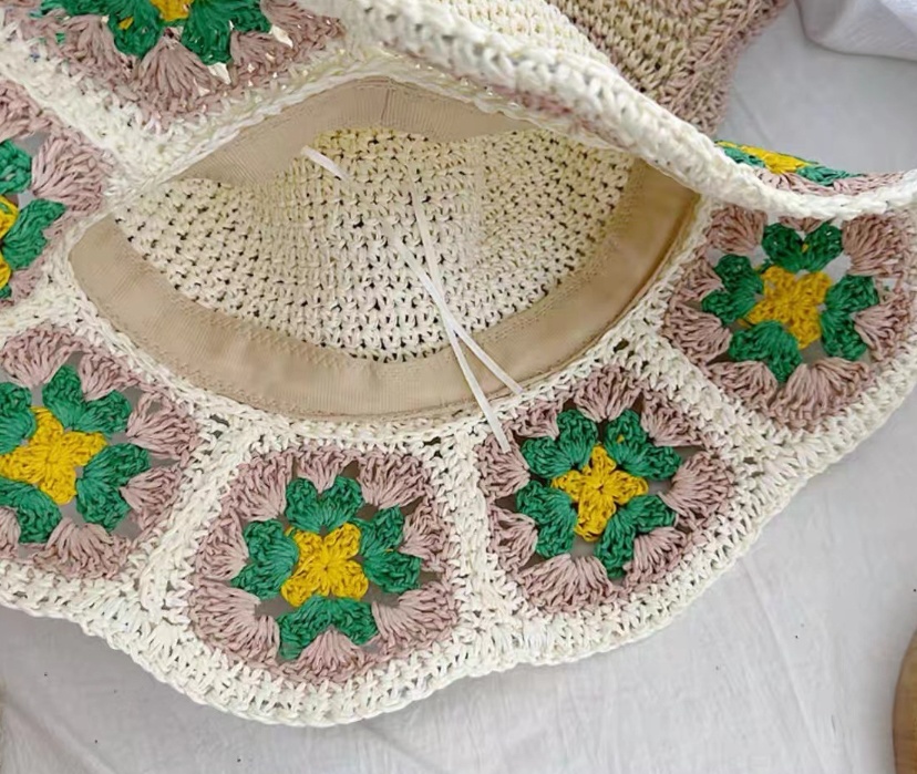 Fashion Personality Handmade Crocheted Flower Straw Hat Women