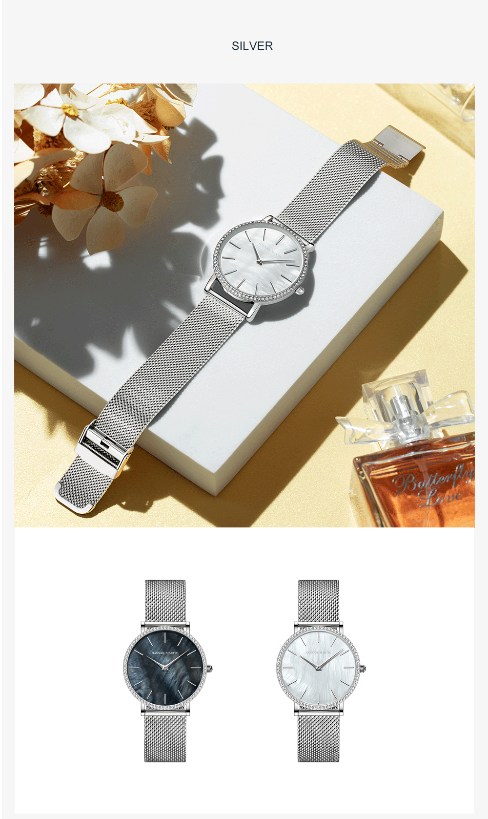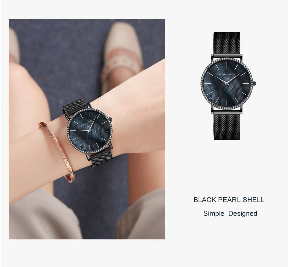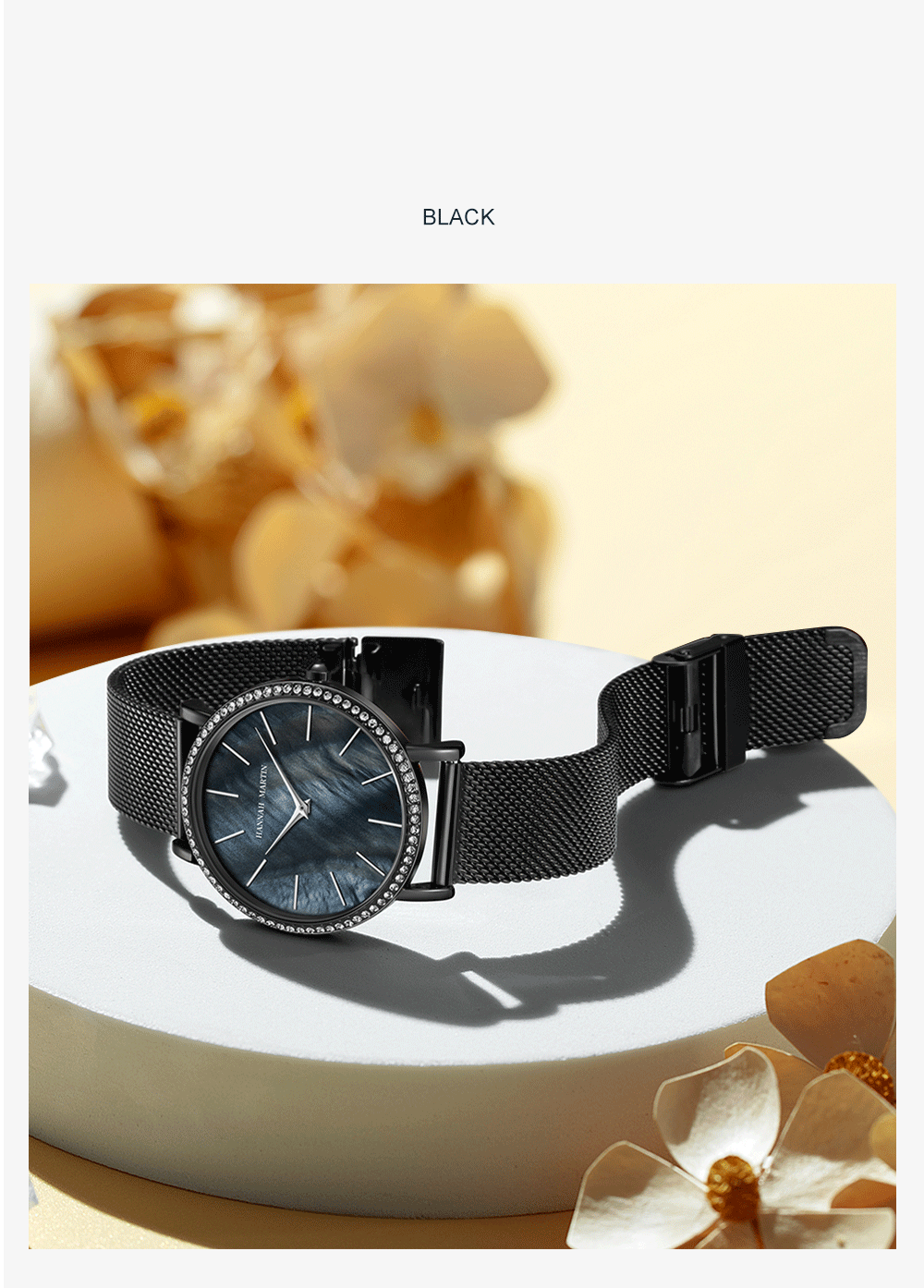 Full Stainless Steel Shell Chain Women's Diamond Shell Surface Quartz Watch