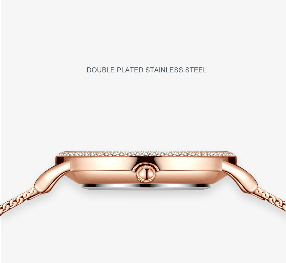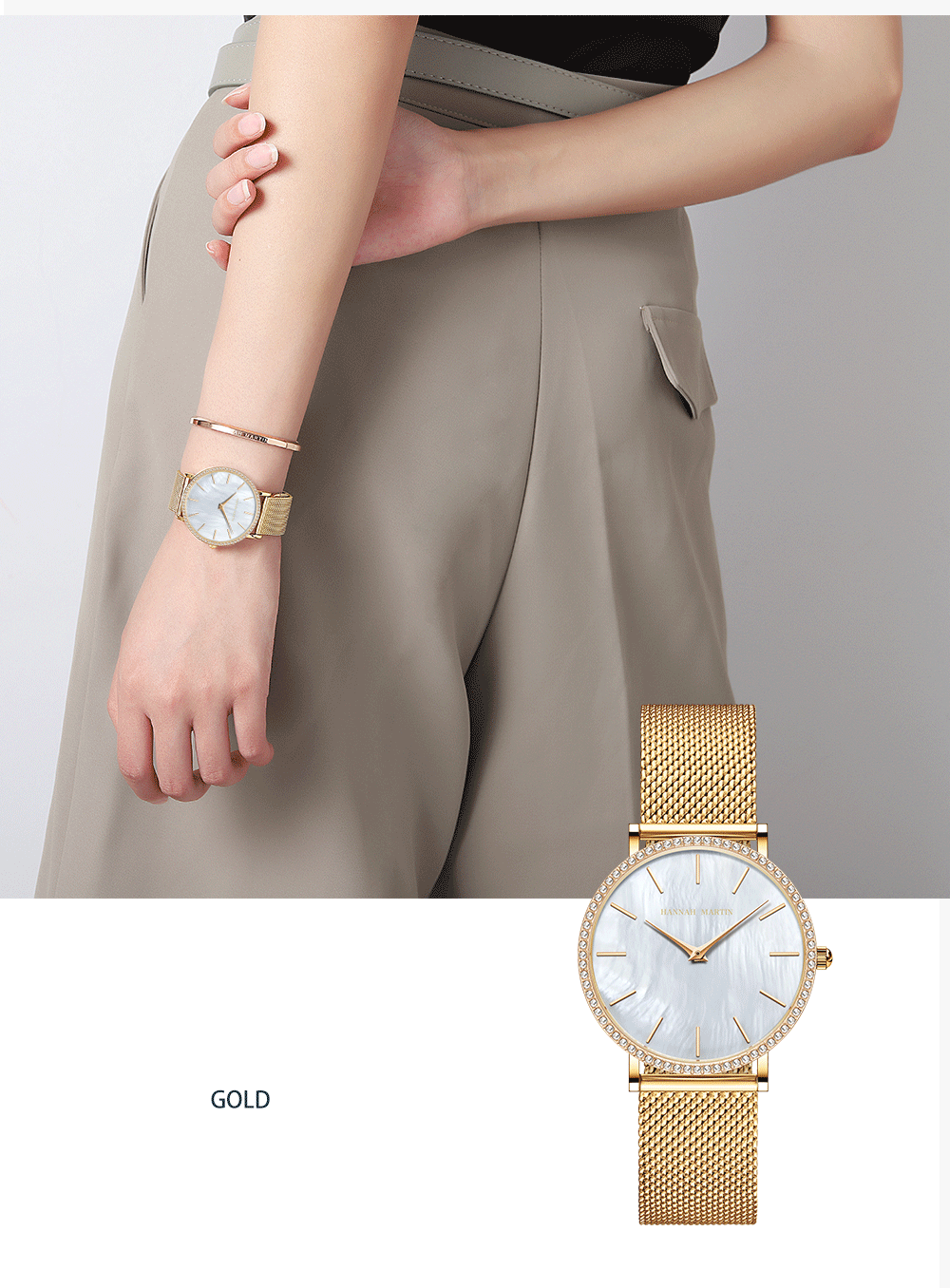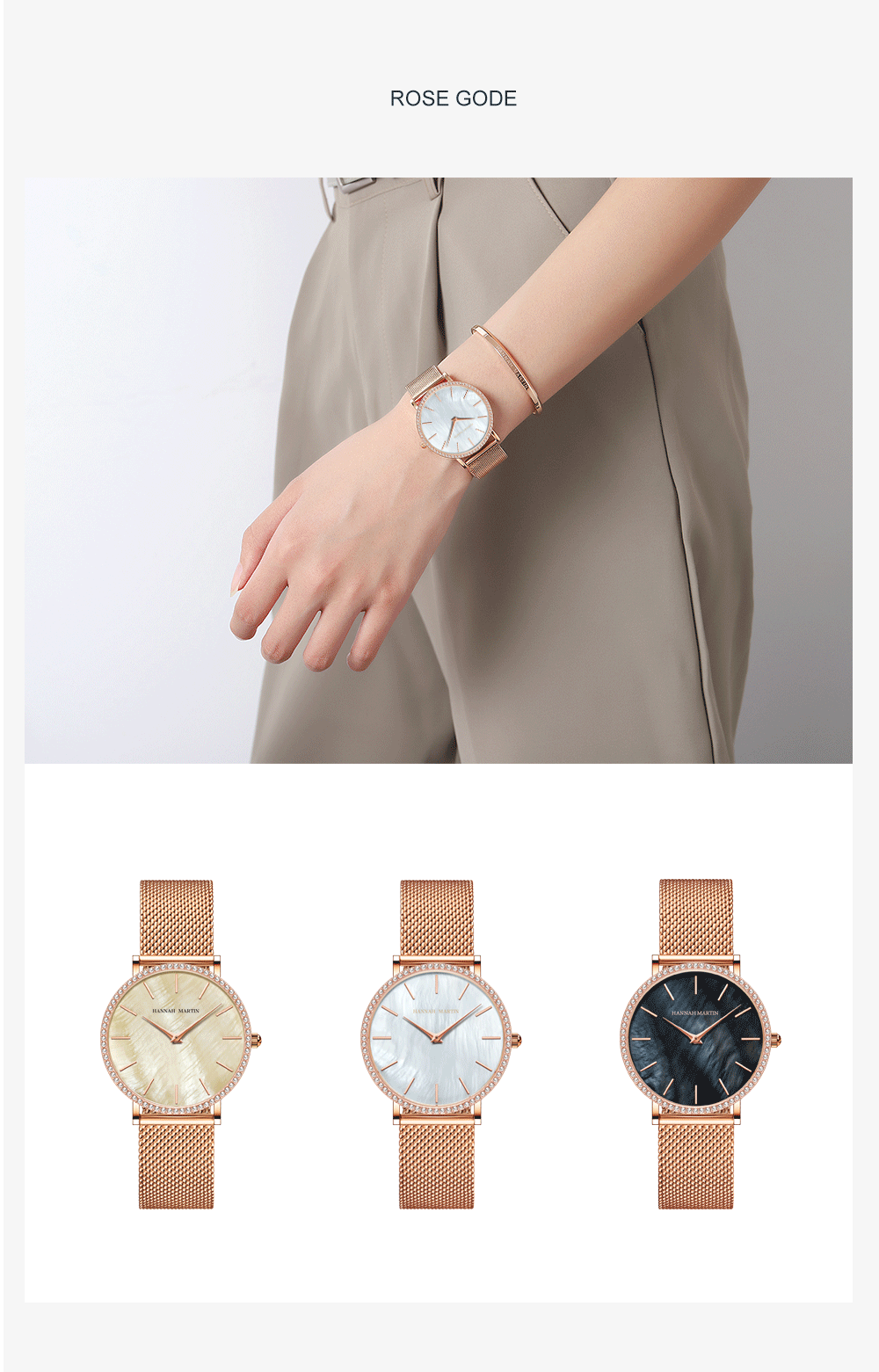 Full Stainless Steel Shell Chain Women's Diamond Shell Surface Quartz Watch