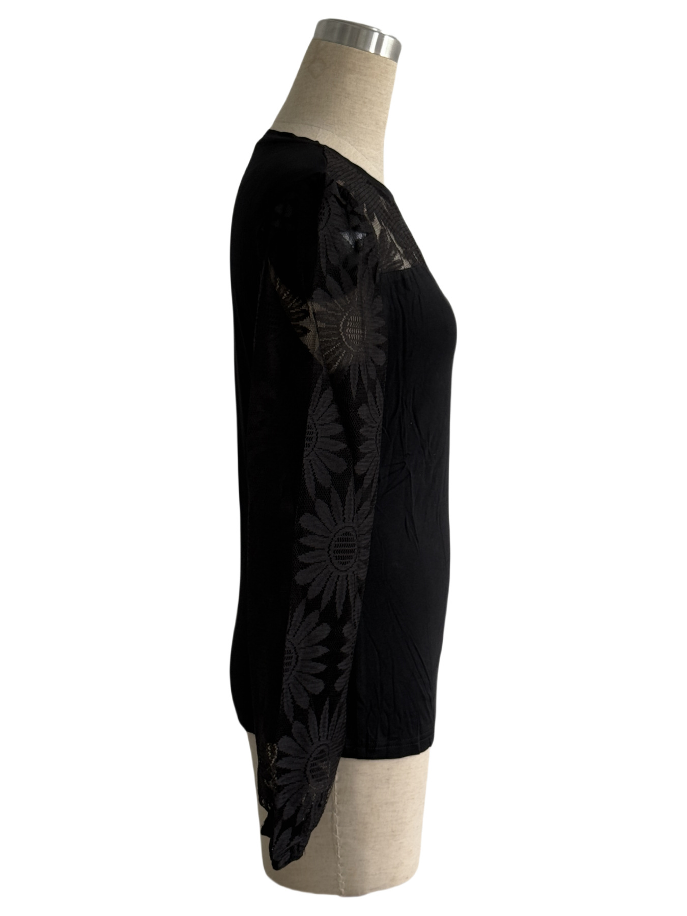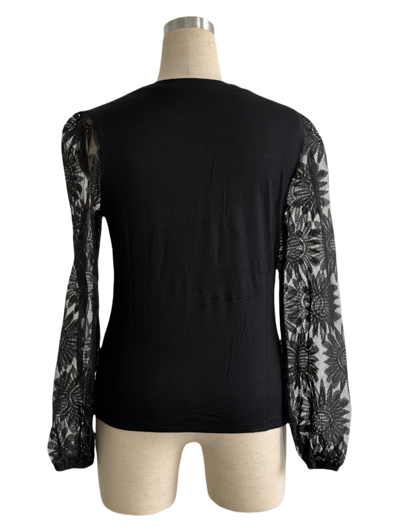 Lace Patchwork Puff Sleeve Women's Long Sleeve Slimming Versatile Slim-fit Top