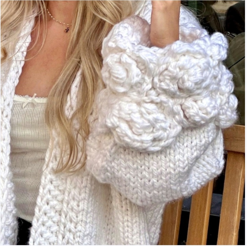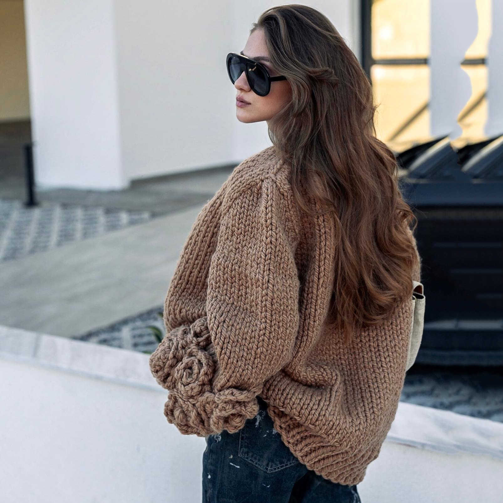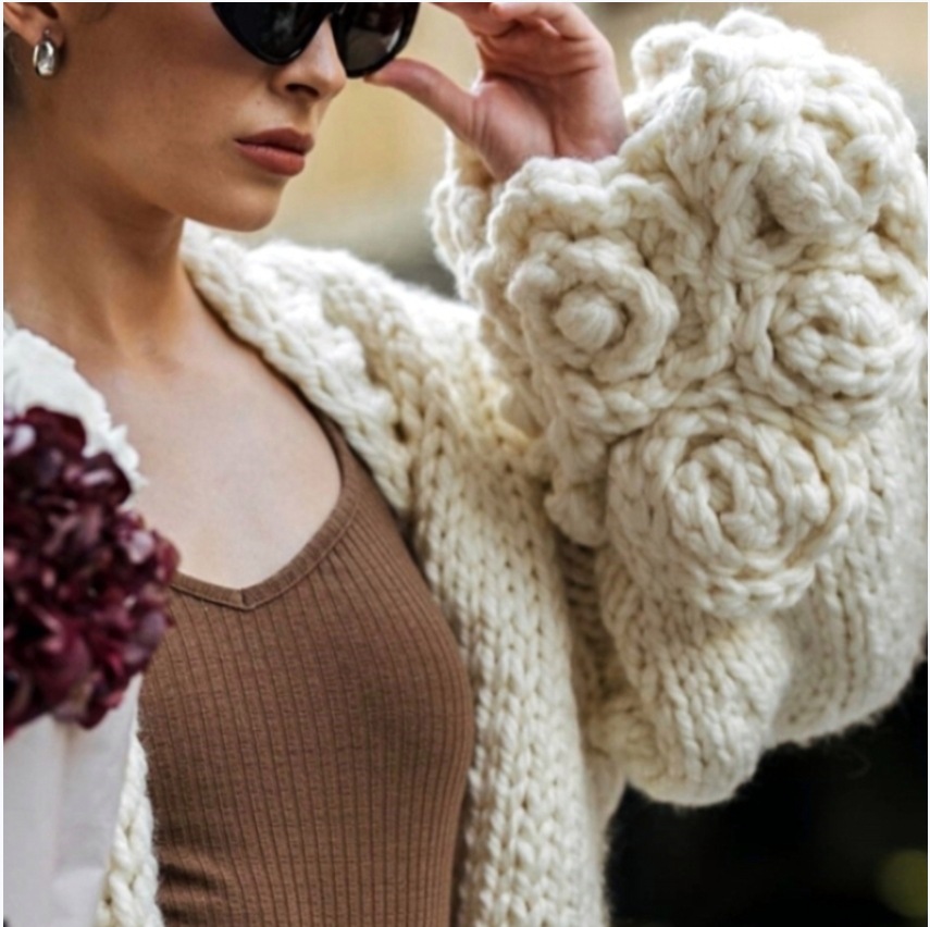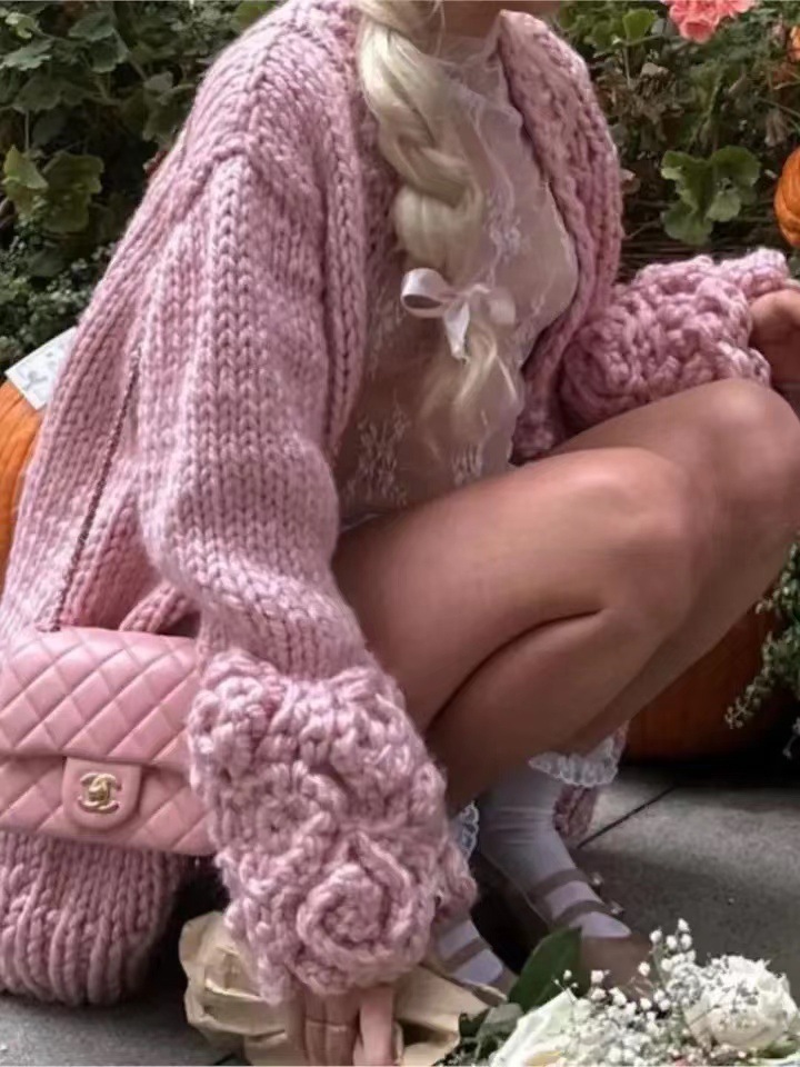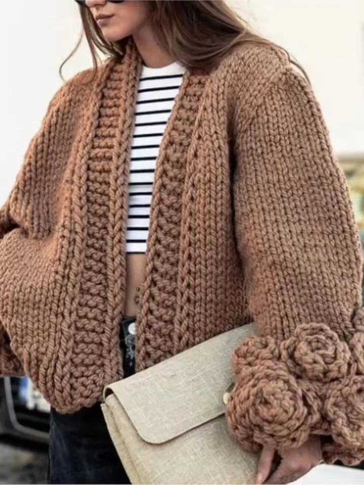 Long Sleeve Sweater Fashion Flower Sleeve Coarse Woven Knitted Cardigan