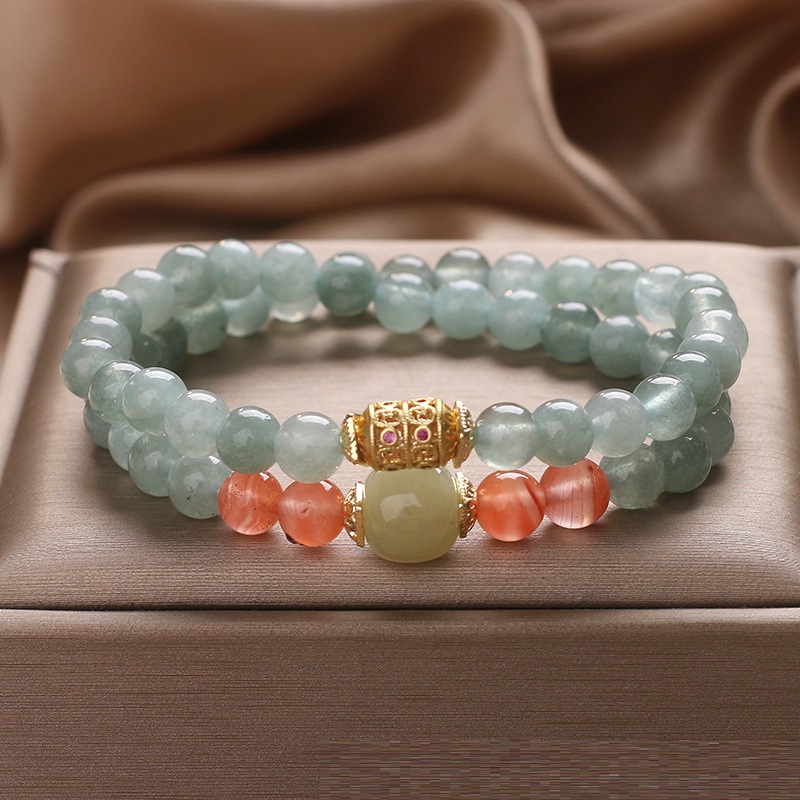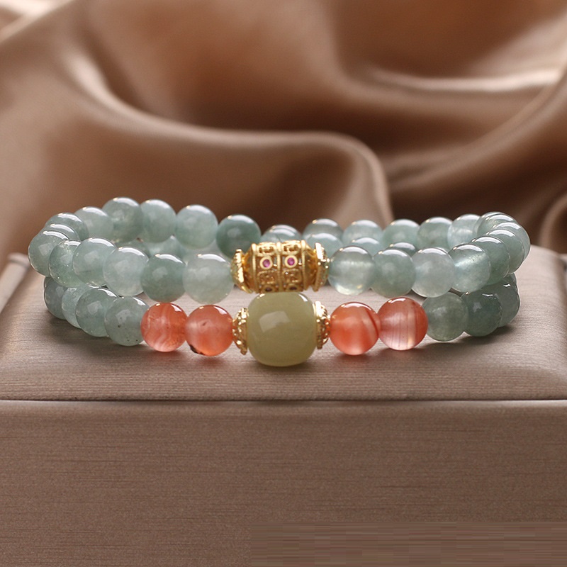 New Chinese Style Oil Green Jade Southern Red Agate Beaded Bracelet