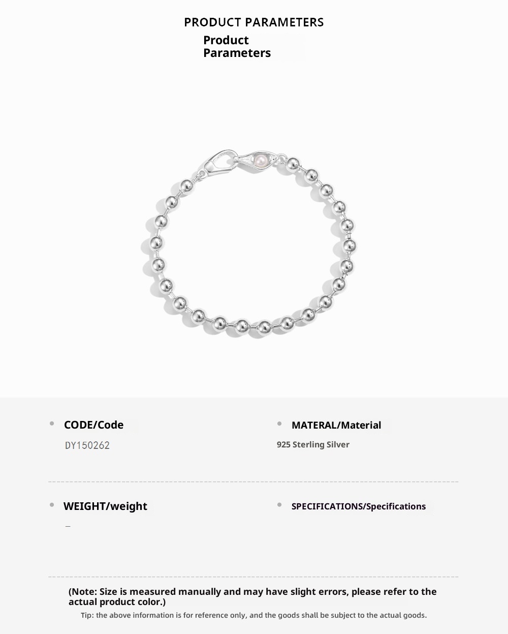 S925 Sterling Silver Bracelet Women's Simple Ball Bead Chain Pearl