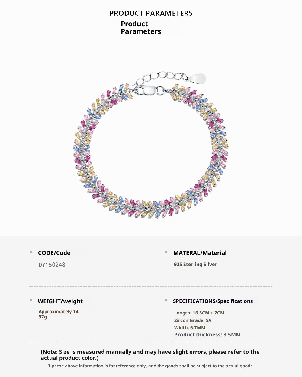 S925 Sterling Silver Women's Bracelet Dopamine Color Zirconium