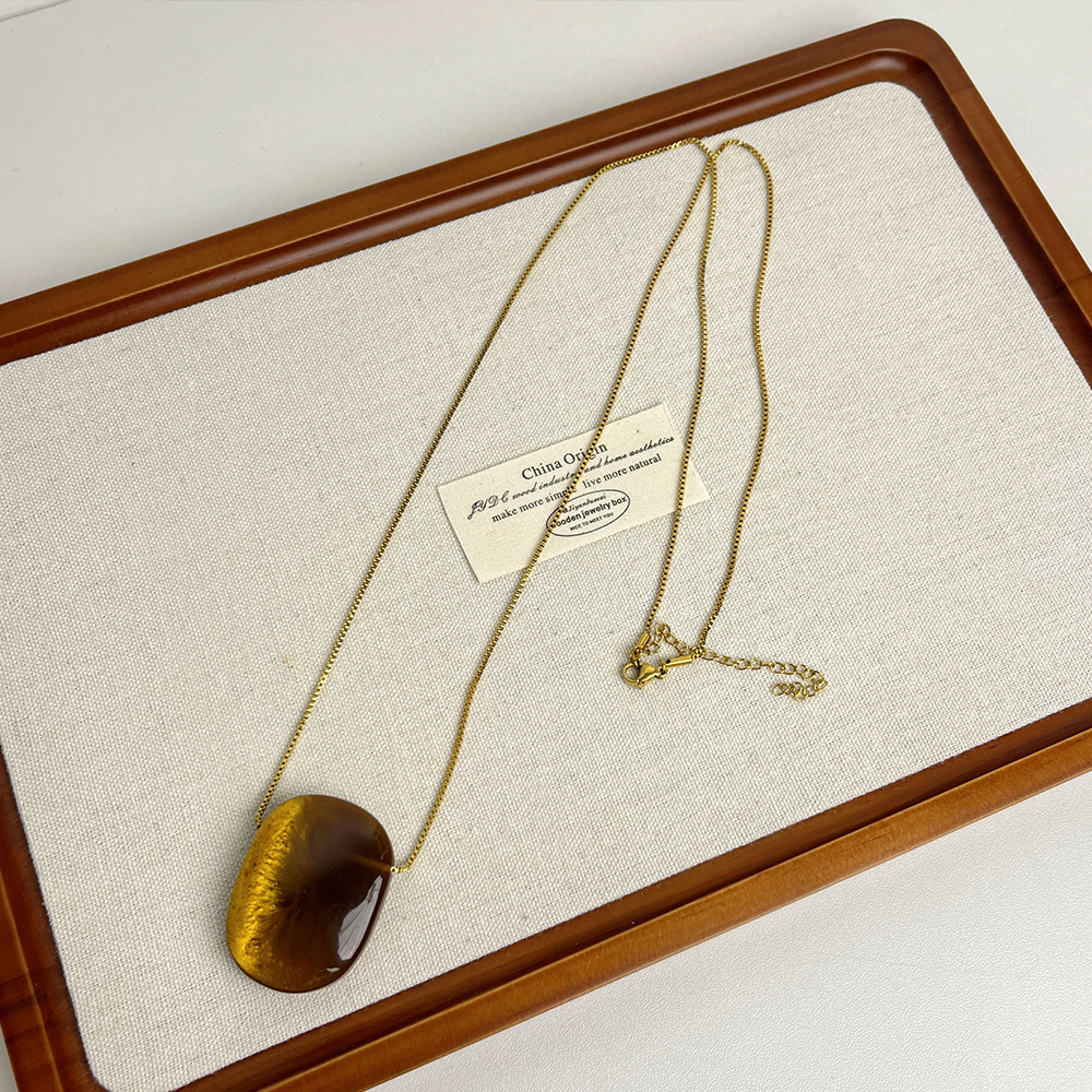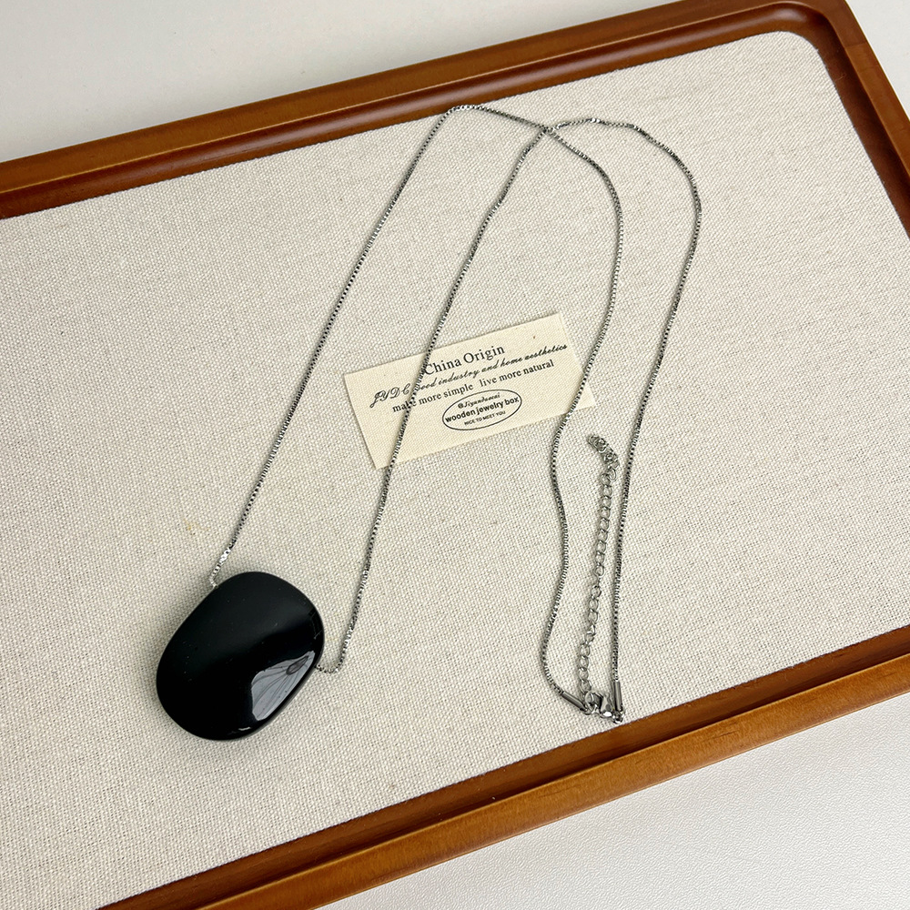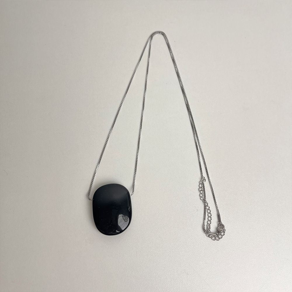 Square Tigereye Pendant Necklace Long Obsidian Sweater Chain Personalized All-matching Accessories