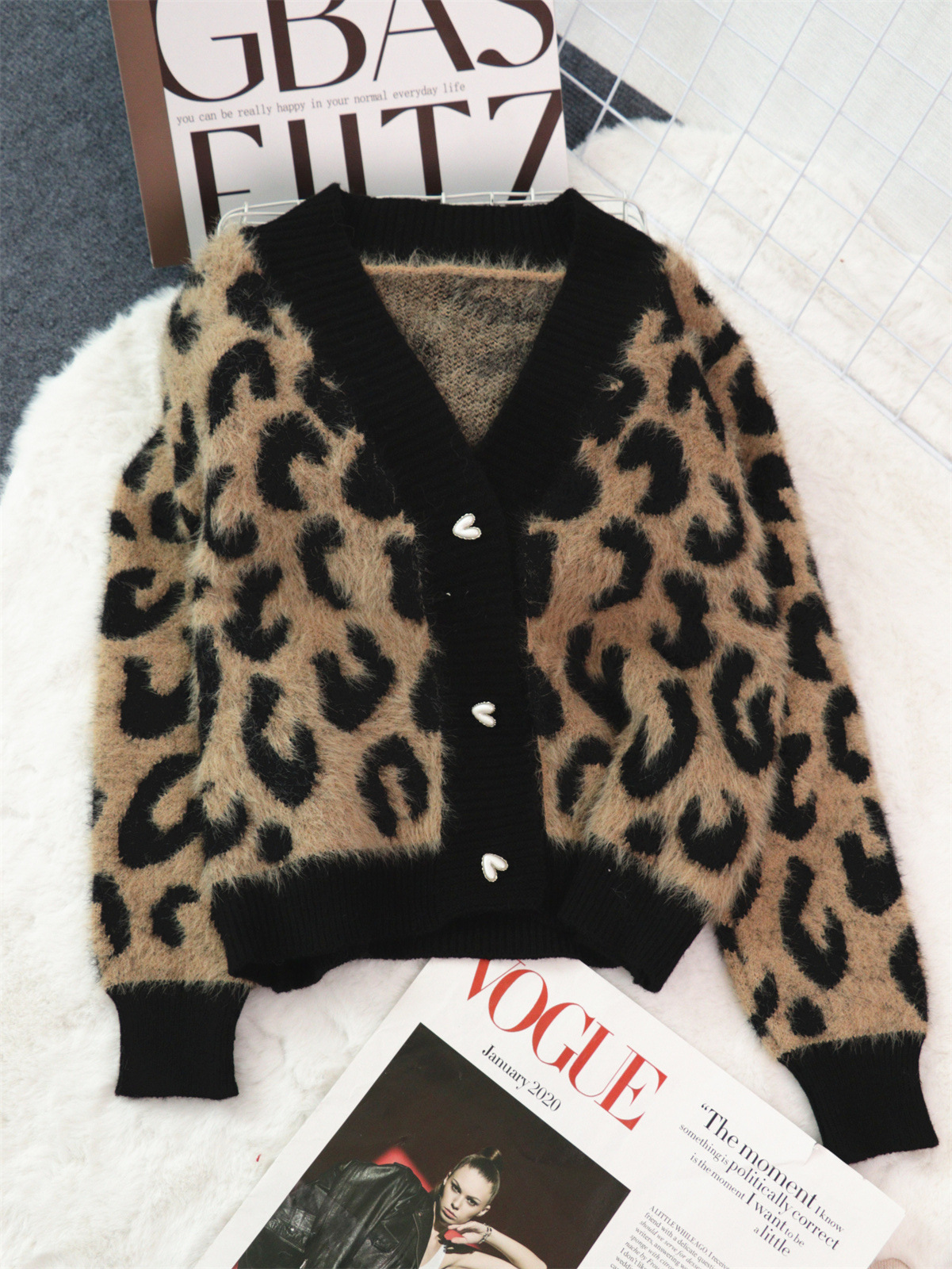 Thick Leopard Print Sexy V-neck Short Single-breasted Sweater