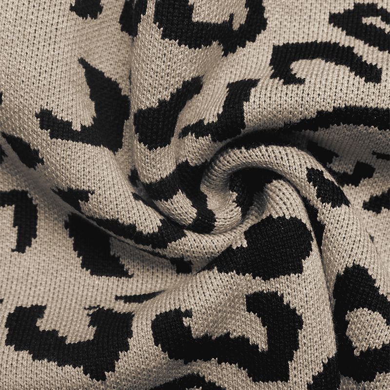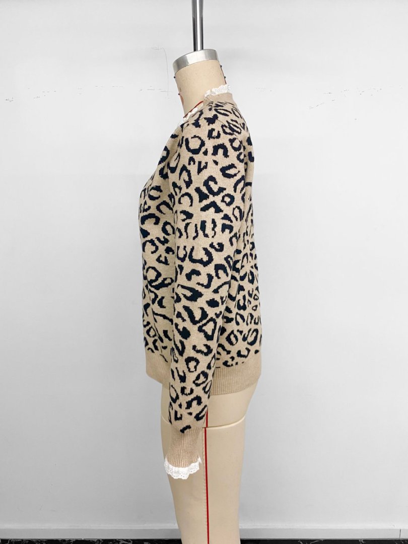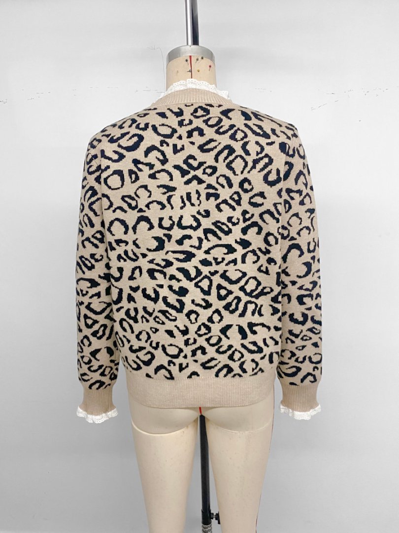 Women's Loose Lace Patchwork Round Neck Leopard-print Knitted Sweater