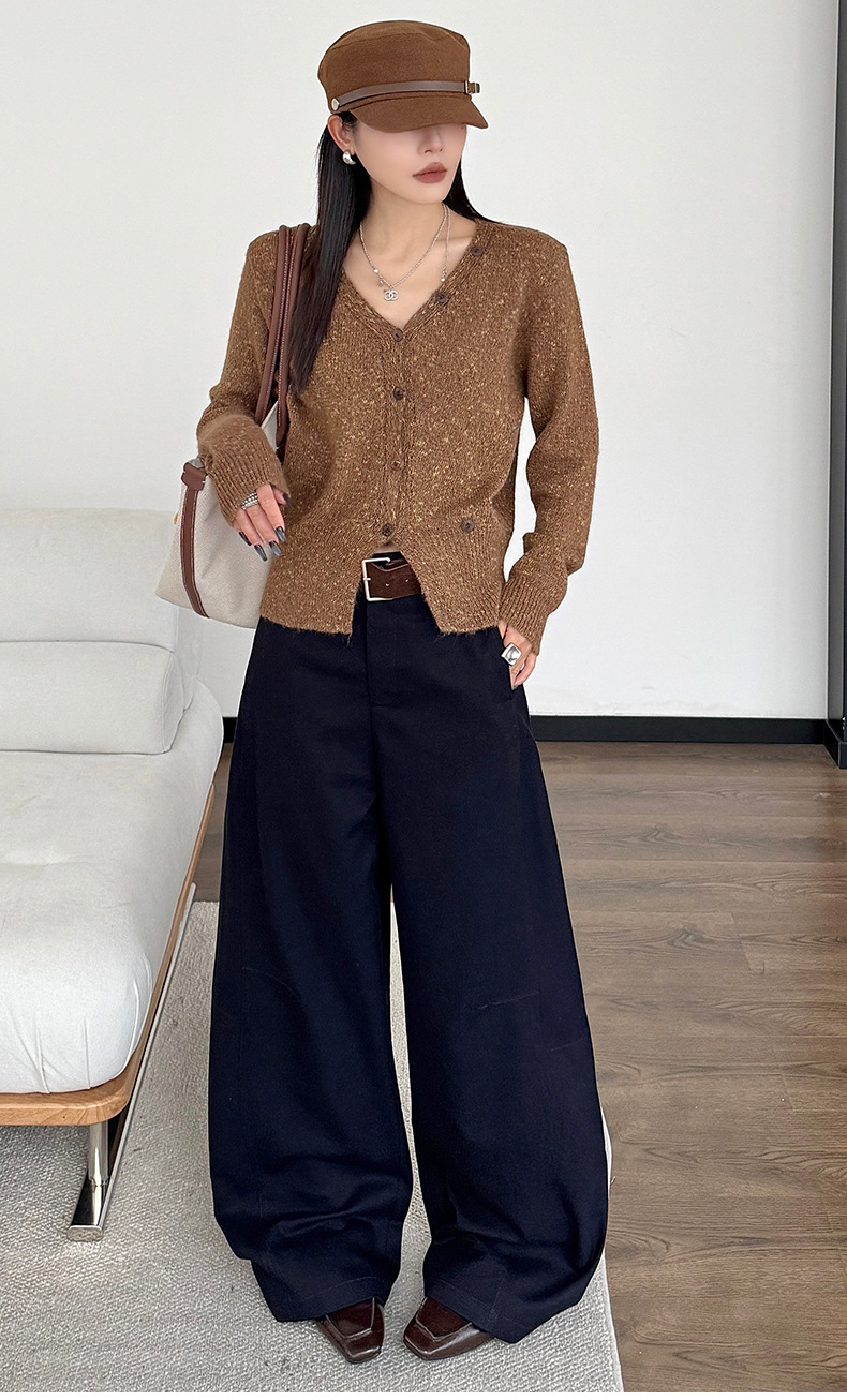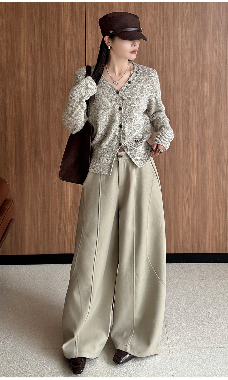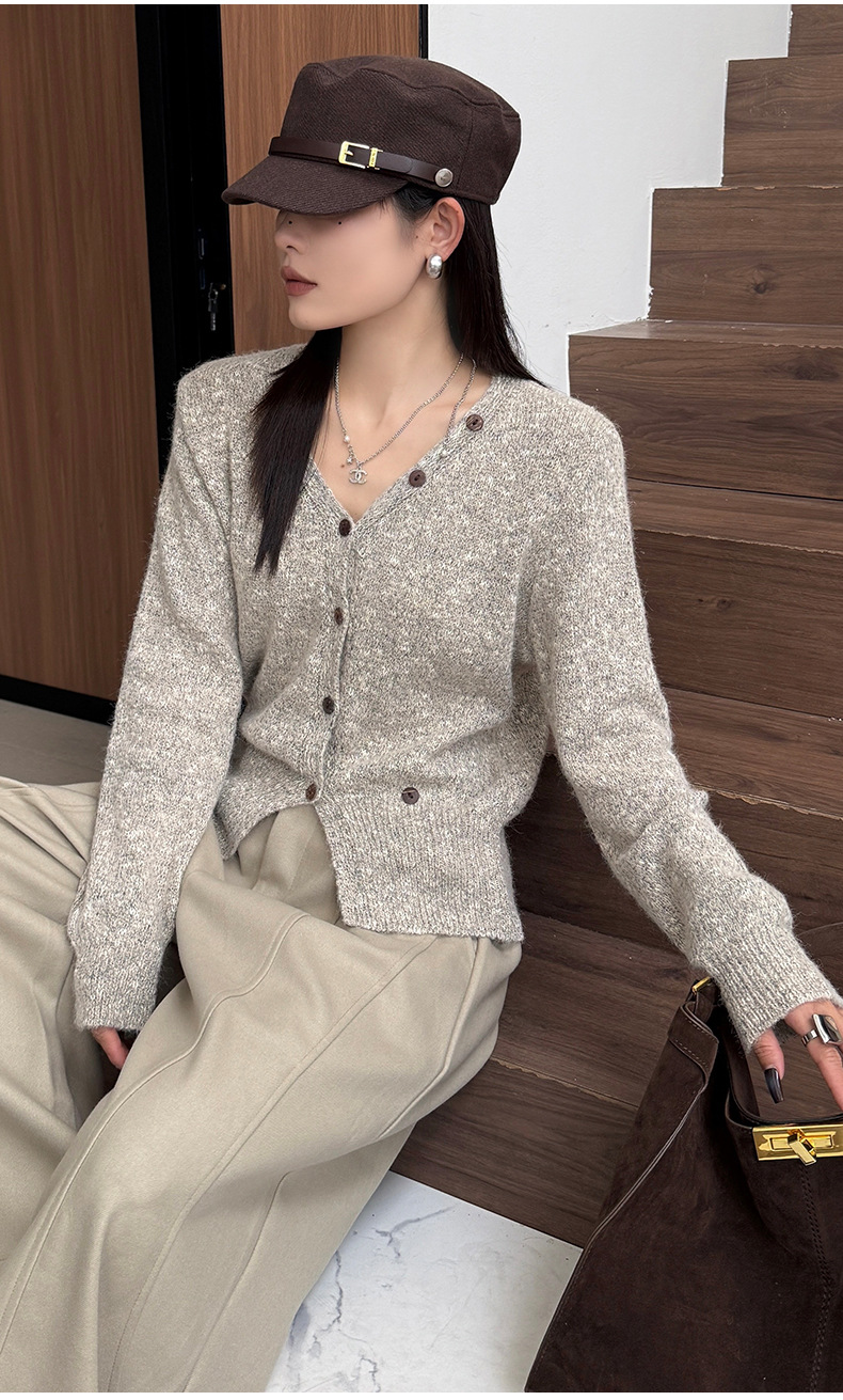 Women's Polyester Knitted V-neck Cardigan Sweater