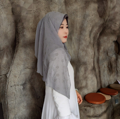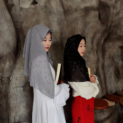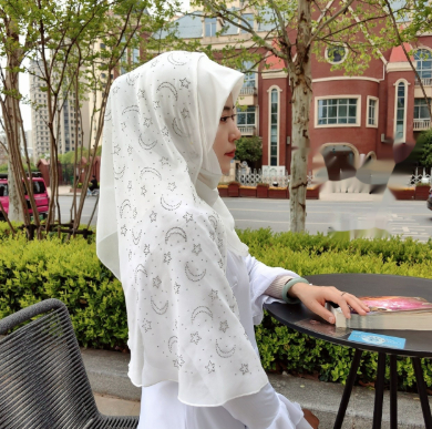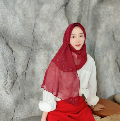 Xingyue Rhinestone Chiffon Stitching Turban Wrap Scarf